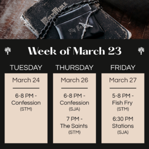 Saturday, March 28 – Vigil Mass – 5:30 PM @ SJA